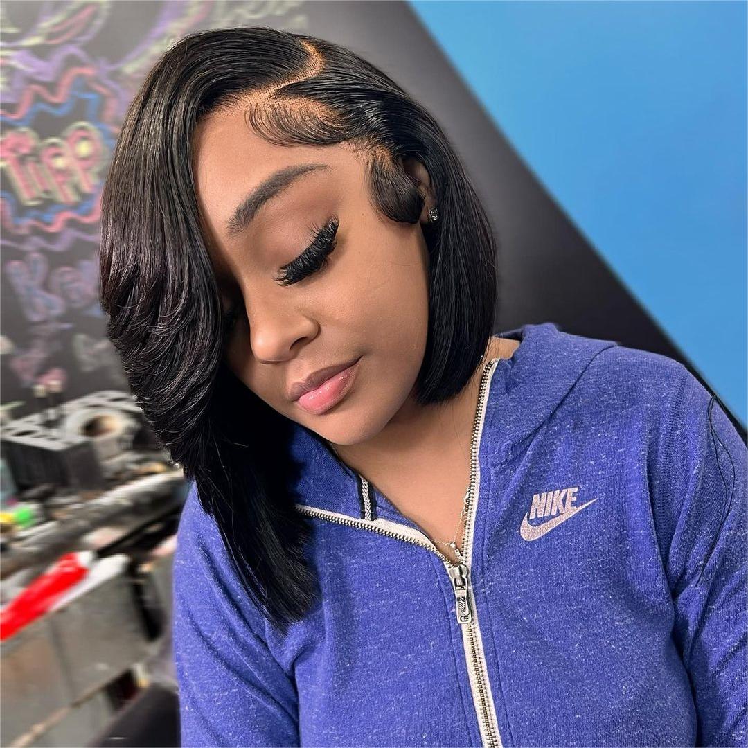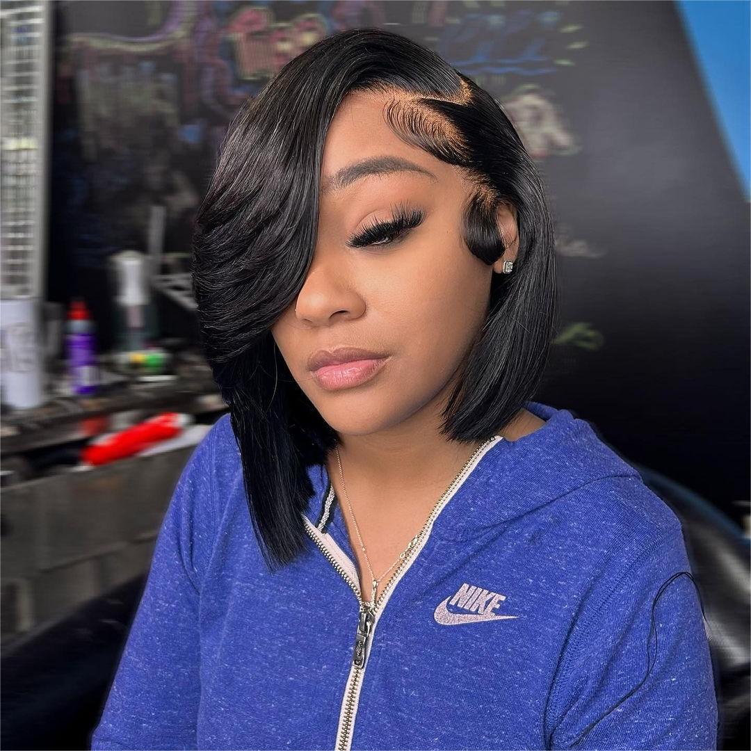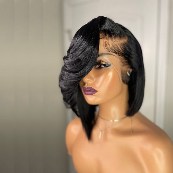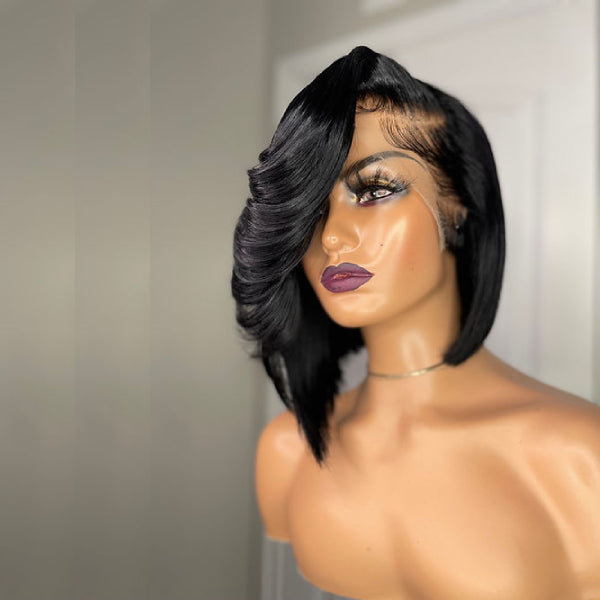 13x4 Lace Frontal Asymmetric Style Side Swept Bangs Wig
