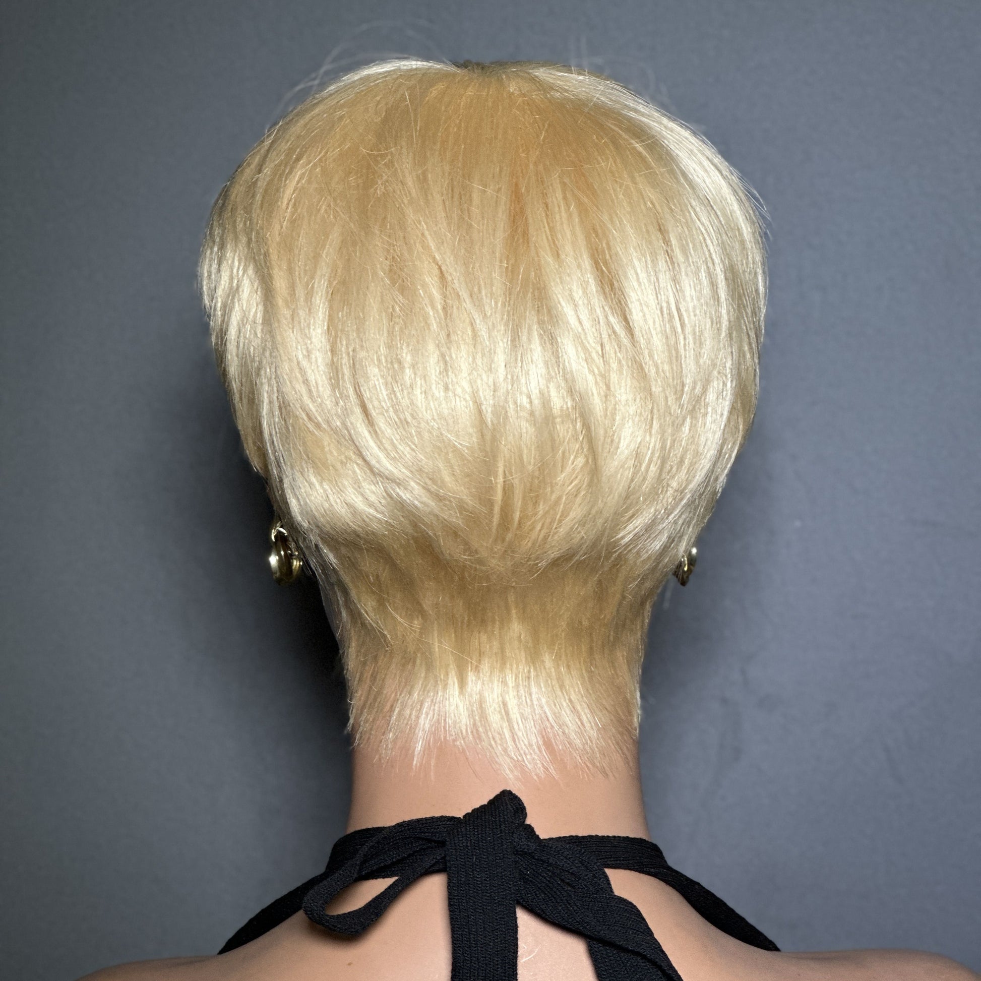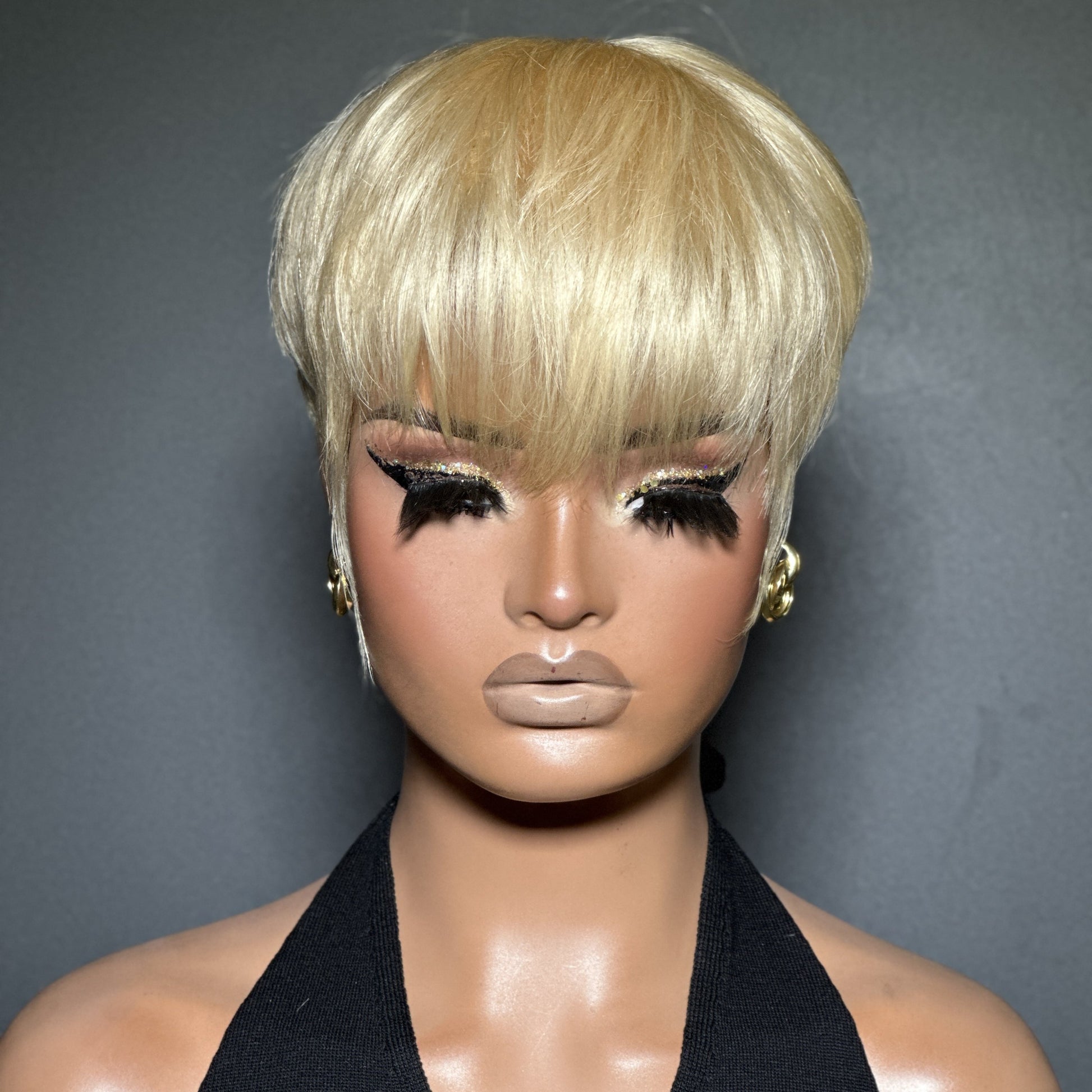 613 Blone Natural Realistic Glueless Short Pixie Cut Bangs Wig