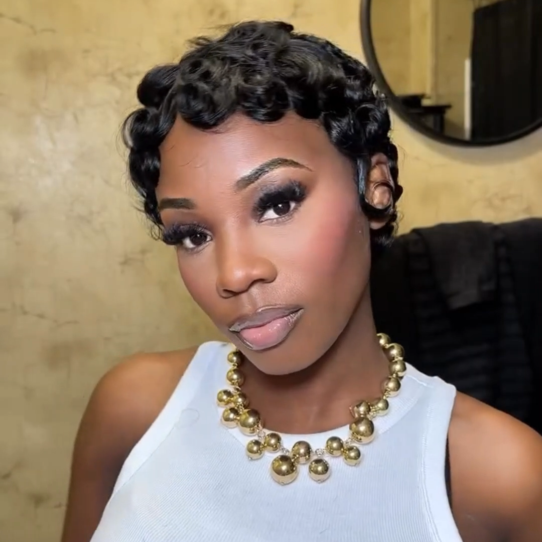 Finger Wave Short Pixie Cut Glueless 100% Human Hair Wig