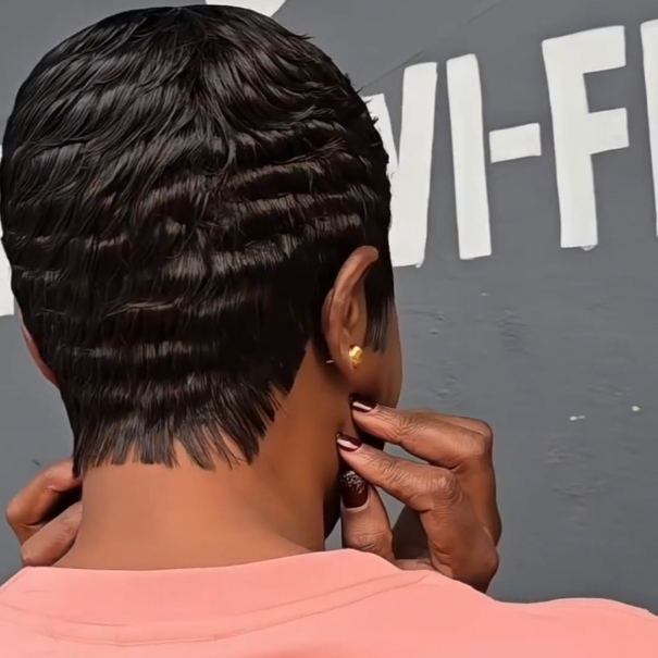 Full Lace Black Blonde Highlight Curly Short Pixie Cut Human Hair Wig