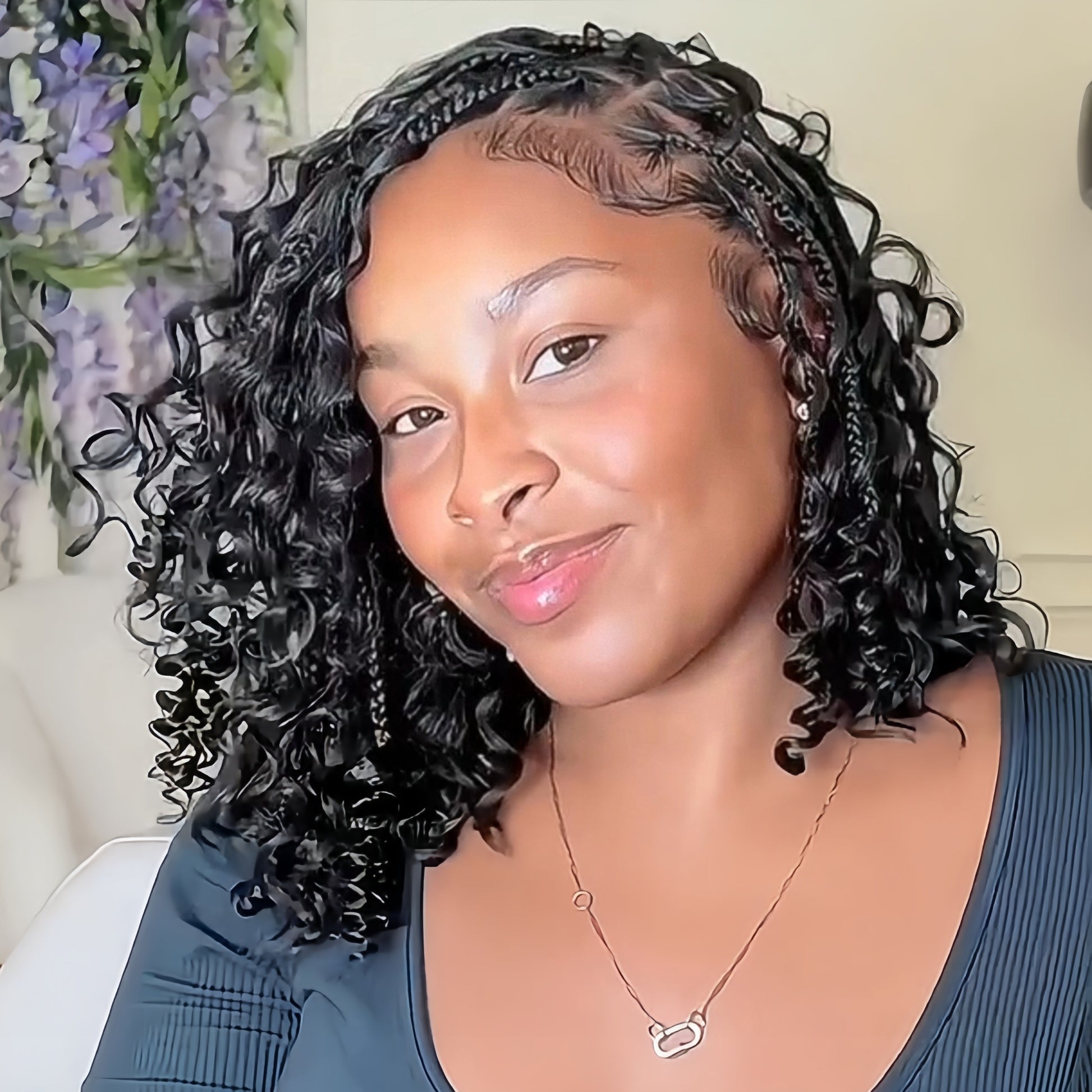 Full Lace Knotless Boho Curls Braided Invisi Drawstring Synthetic bob Wig