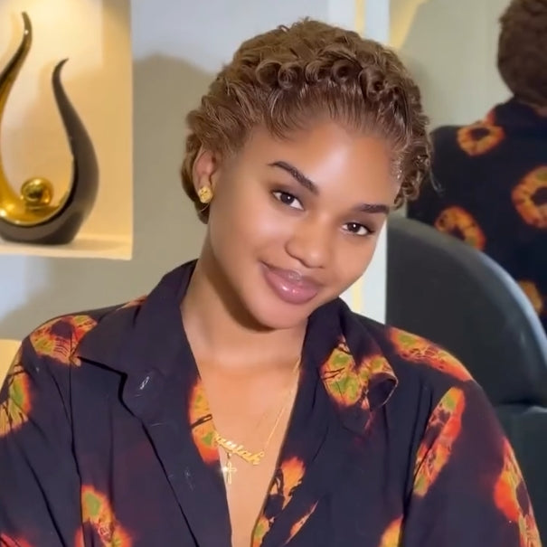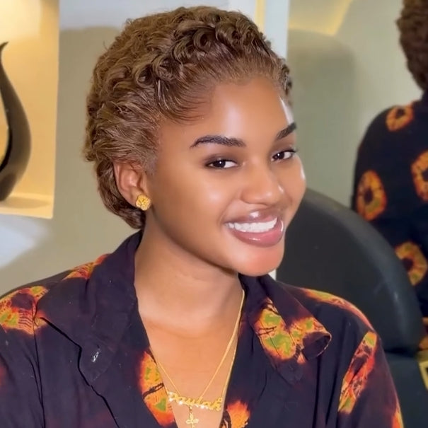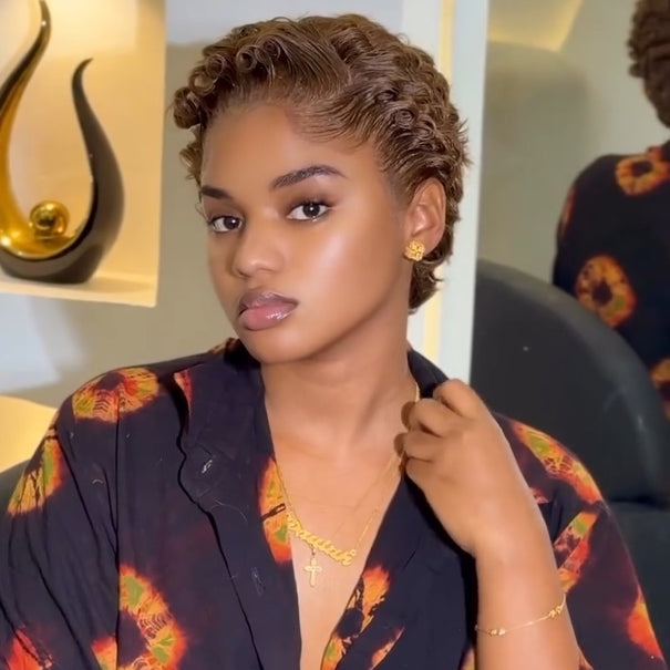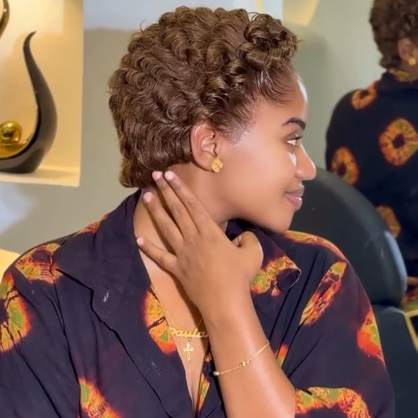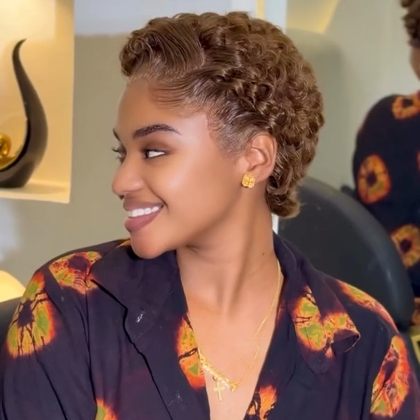 Full Lace Light Brown Finger Curly Short Pixie Cut Human Hair Wig