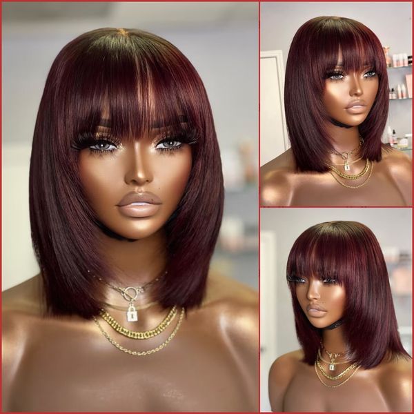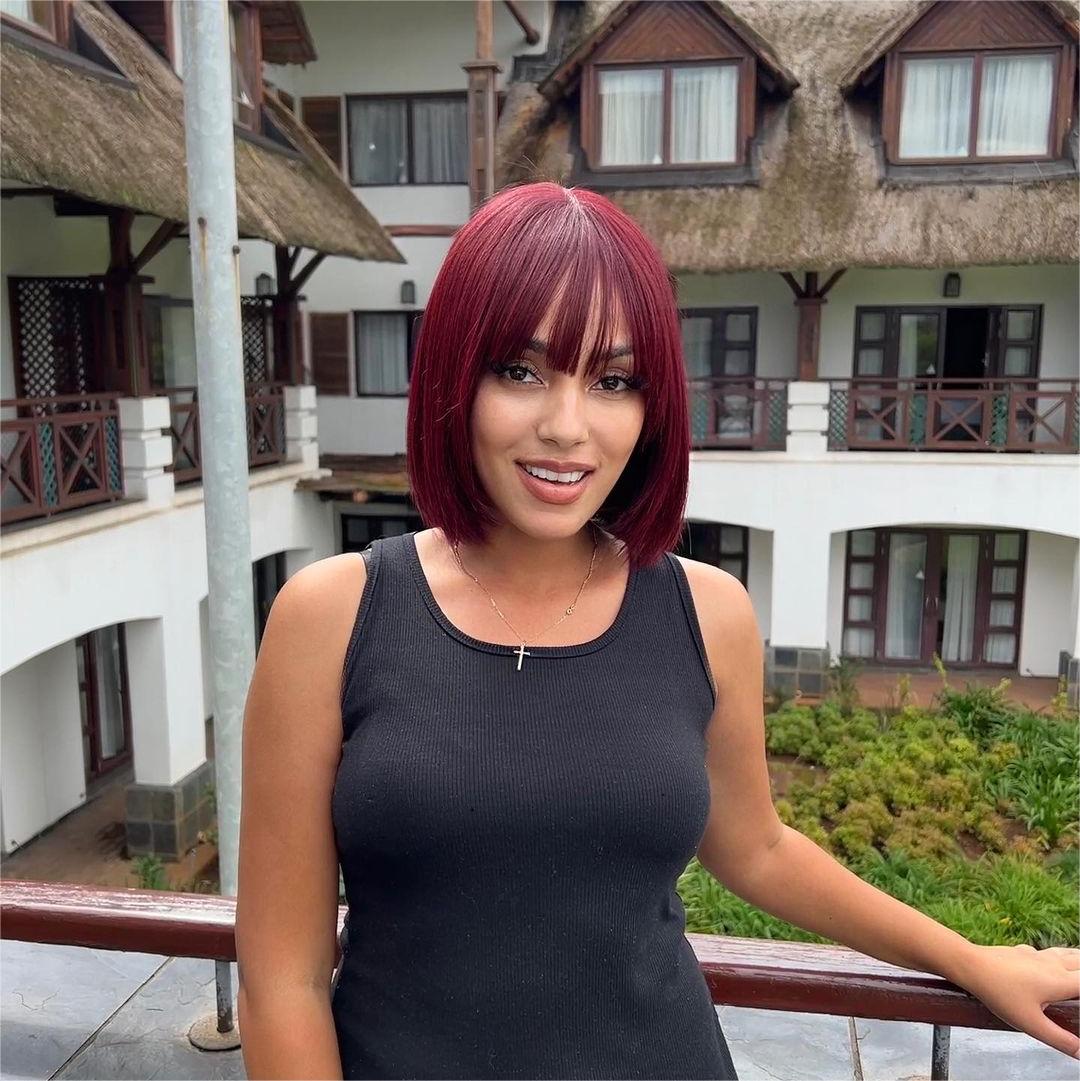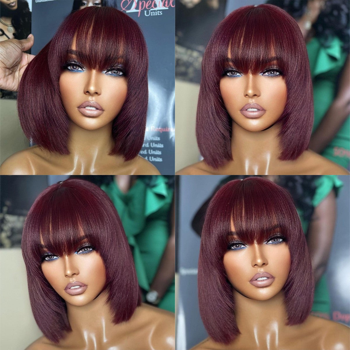 Lace Hair Slit Mechanism Burgundy Bob Wig With Bang