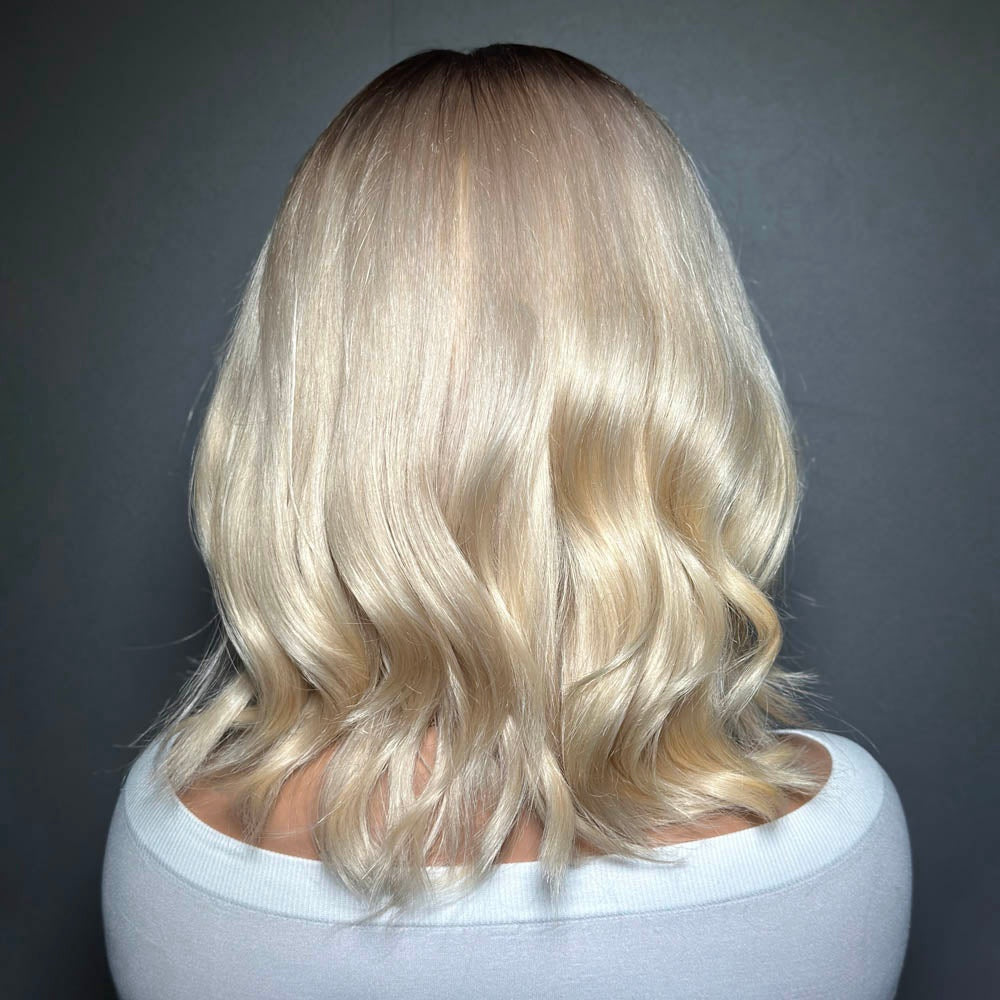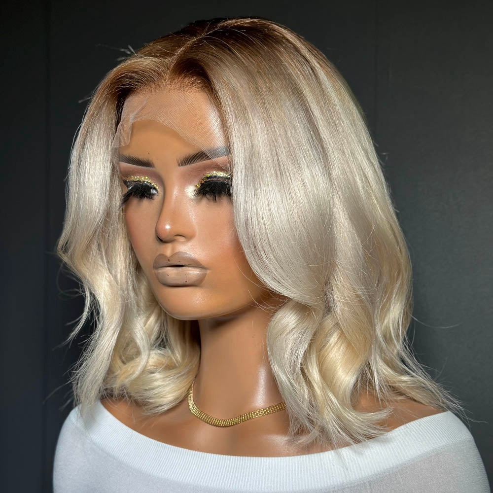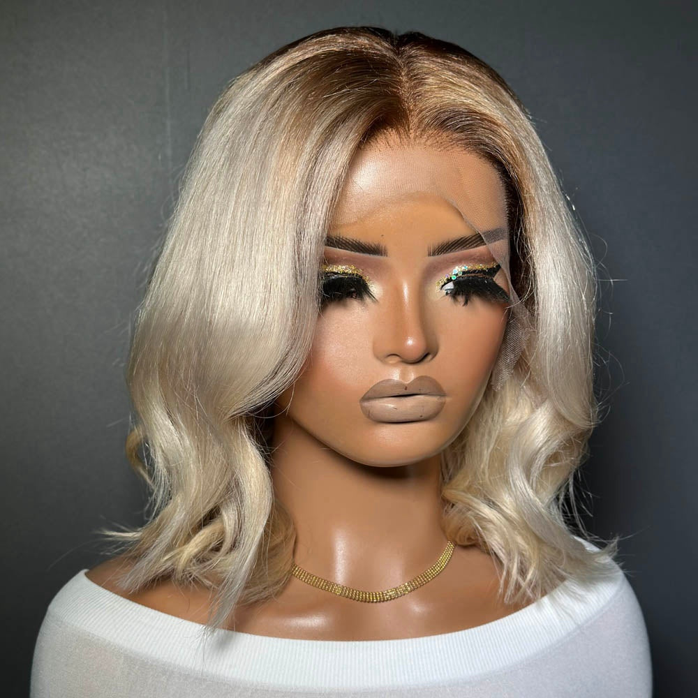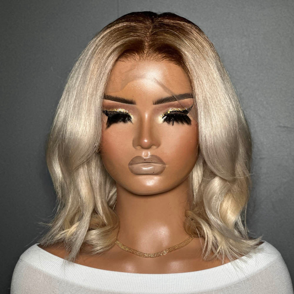 Shoulder Length Blonde Wavy Dark Roots 13x4 Lace Front Wig