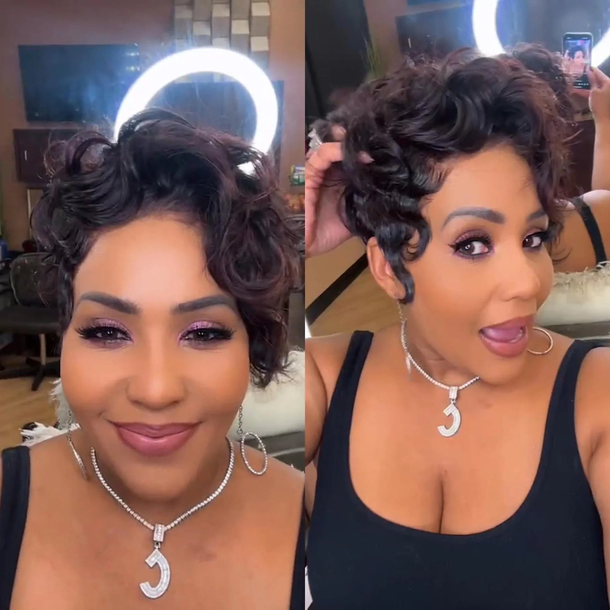Side Bang Wave Curls Full Lace Short Pixie Cut Wig