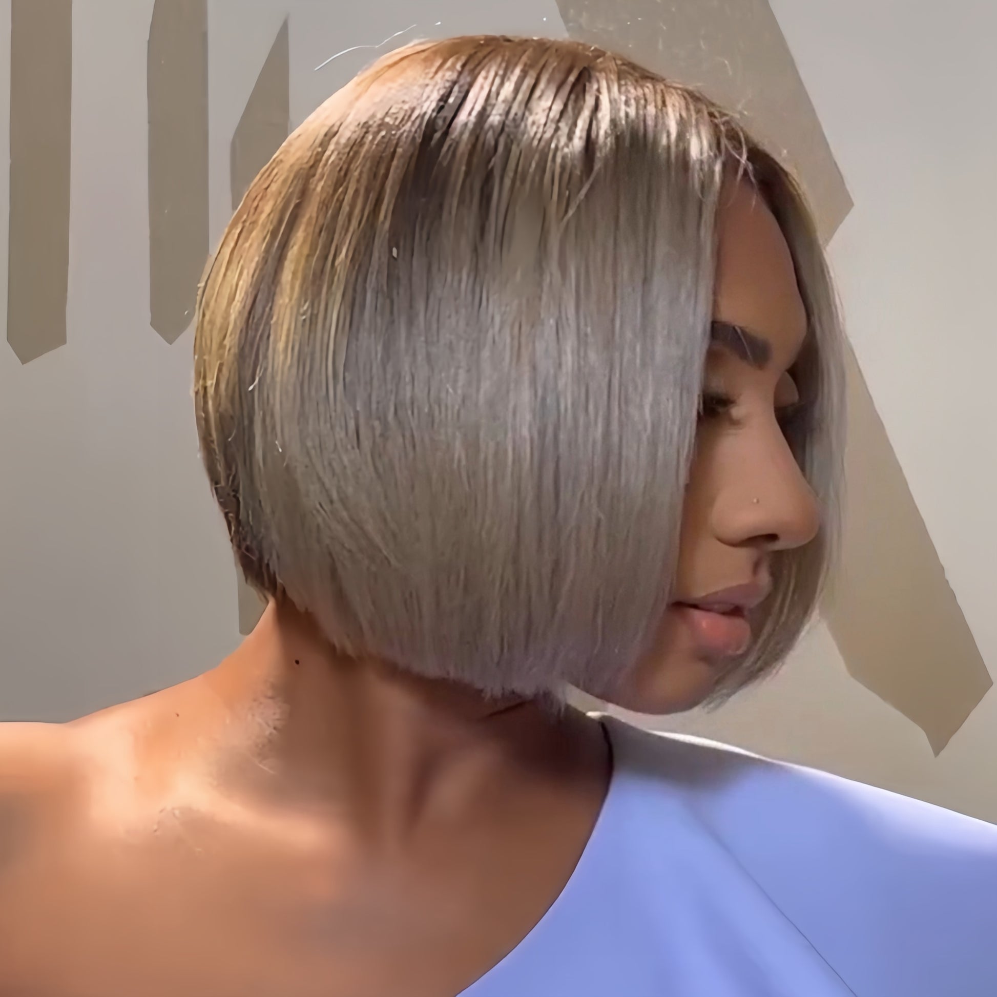 Silver Gray Realistic Natural 13x4 Lace Frontal Bob Wig