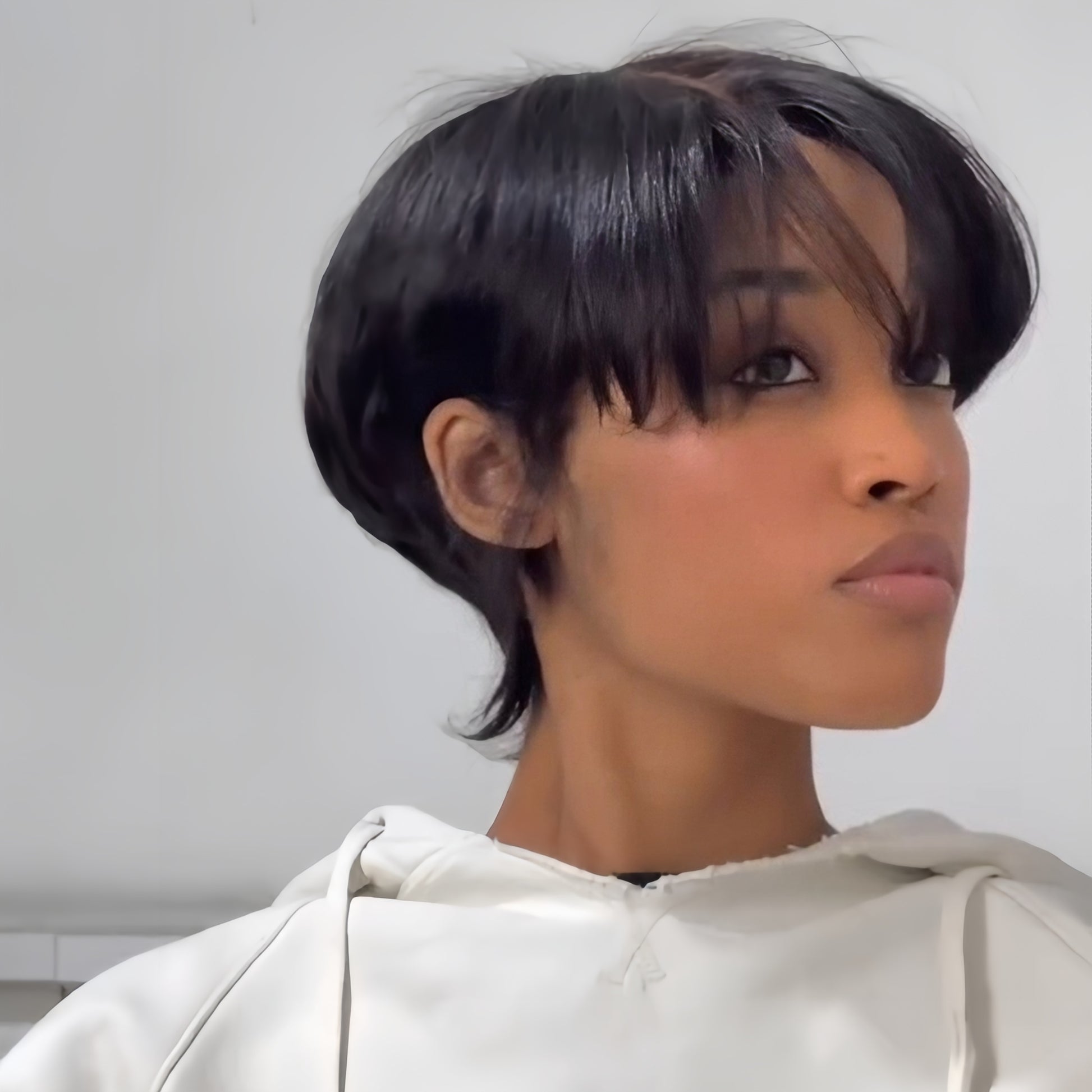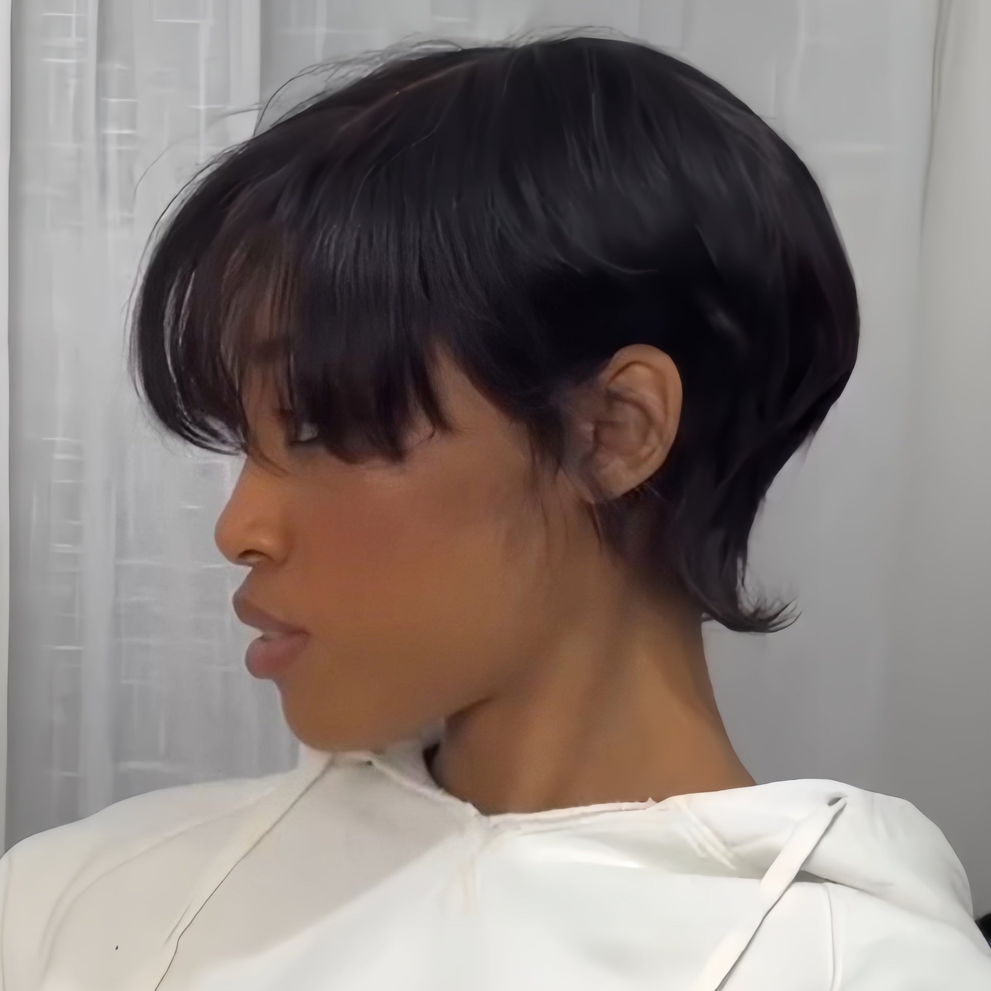 Wear & Go Natural Wavy Curtain Mullet Pixie Cut Bangs Wig